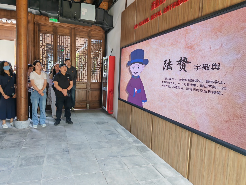 上午,党员们来到了位于嘉兴市区的宣公祠,聆听讲解员讲述陆宣公陆贽生平事迹,观看动画了解其清廉为官的故事,参观学习了宣公祠内“清廉罡风”“治世安邦”两个版块的内容,告诫广大党员慎微慎独,做到克己奉公、以俭修身,永葆清正廉洁的政治本色。