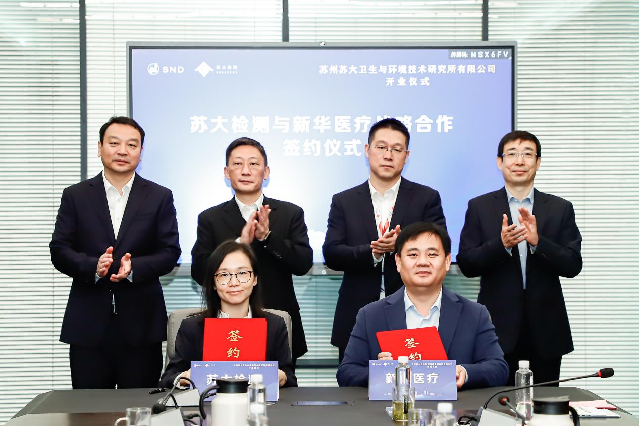 现场,苏大检测与新华医疗进行战略合作签约,新华医疗—苏大检测医疗器械安全性与有效性联合研发中心、江苏省医疗器械安全性与有效性工程技术研究中心揭牌。苏大检测将聚焦医疗器械研发、临床前动物实验、生物学评价、临床评价等领域,协同苏州大学苏州医学院及苏州大学附属医院的科技力量,进一步深化产学研协同发展,打造中国医疗器械行业高地。